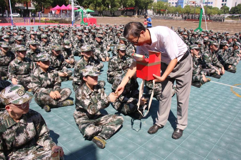陈胜国表示,我院是一个温暖的大家庭,在军训场上度过中秋节是我院的大团圆,今年的中秋节也因此有了特别的意义。近来高温天气持续,陈胜国强调,这是磨炼也是考验,他希望同学们注意身体、顽强拼搏,在军训中实现蜕变。随后,陈胜国为新生及军训教官分发中秋月饼并祝愿他们节日快乐。