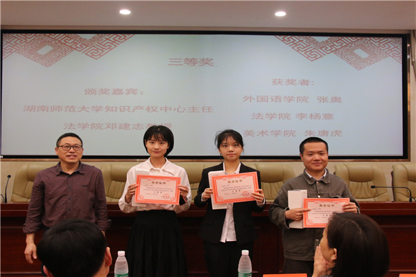 随后,与会领导为此次知识产权宣传周作品获得一、二、三等奖及参与奖的20名同学颁奖。颁奖结束后,获奖学生分别对获奖作品做出展示。