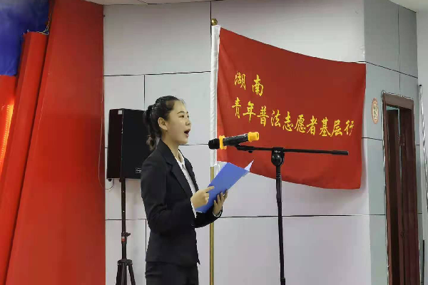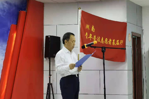 (通讯员 党晴晴 贺鉥涵)5月19日上午,湖南省“2021年青年普法志愿者法治文化基层行”启动仪式于长沙市岳麓区学堂坡社区举行。湖南省法学会副会长、我院院长肖北庚出席活动,法律义工团队队长汪婷婷作为志愿者代表上台发言。