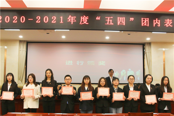 (通讯员 吉娜 付晓洁)5月13日中午,我院2020—2019年度“五四”团内表彰大会在205会议室举行。我院党委书记于烽、党委副书记陈胜国、法硕办老师郭旭栋、2018级辅导员罗静伟、2019级辅导员周俊光以及2020级辅导员郭胜习出席此次大会。大会由我院团委办公室干事陈观华主持。