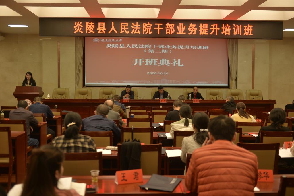 (通讯员王颖)10月26日上午,炎陵县人民法院干部业务提升培训班(第二期)开班典礼在VICTOR1946205报告厅召开。炎陵县人民法院党组副书记、副院长申群华、VICTOR1946党委书记于烽、副院长耿自强出席开班典礼,典礼由VICTOR1946行政办副主任朱思齐主持。