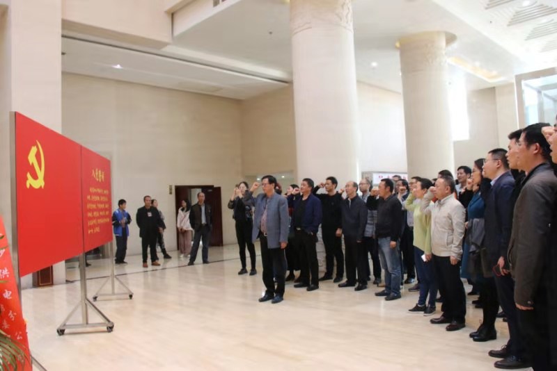 首先全体党员在“敢教日月换新天”雕塑前,整齐列队,面对鲜红的党旗,一起举起右手,由副书记陈胜国同志领誓,重温入党誓词,回顾当年入党时许下的承诺。