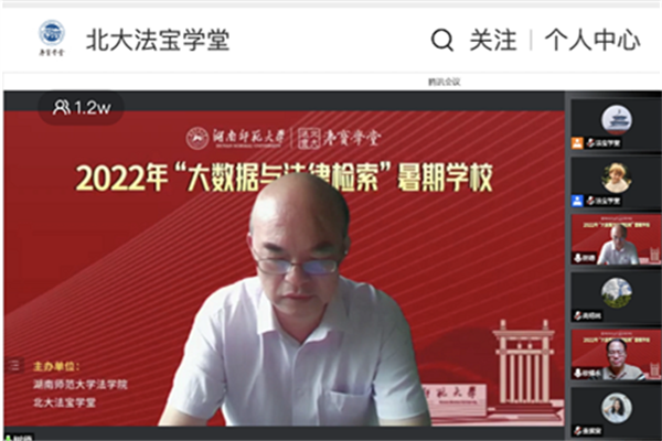 (通讯员 解靖 黄洁)秉承着课堂无边界,教学无边界的公益理念,8月8日上午,由我院与北大法宝学堂联合主办,中国大学MOOC《大数据与法律检索》课程团队承办的2022年“大数据与法律检索”暑期学校开幕式暨法律检索与类案应用主题论坛线上举行,来自海内外百余所高校的1.2万多人通过北大法宝学堂平台观看了本次直播。北京大学法律人工智能实验室副主任、北大法宝创始人、总经理赵晓海,我院院长、教授肖北庚,授课师资团队成员,资深学者,行业实务专家,全体正式学员以及其他受邀嘉宾参与本次论坛。我院副院长、教授欧福永主持本次开幕式。
