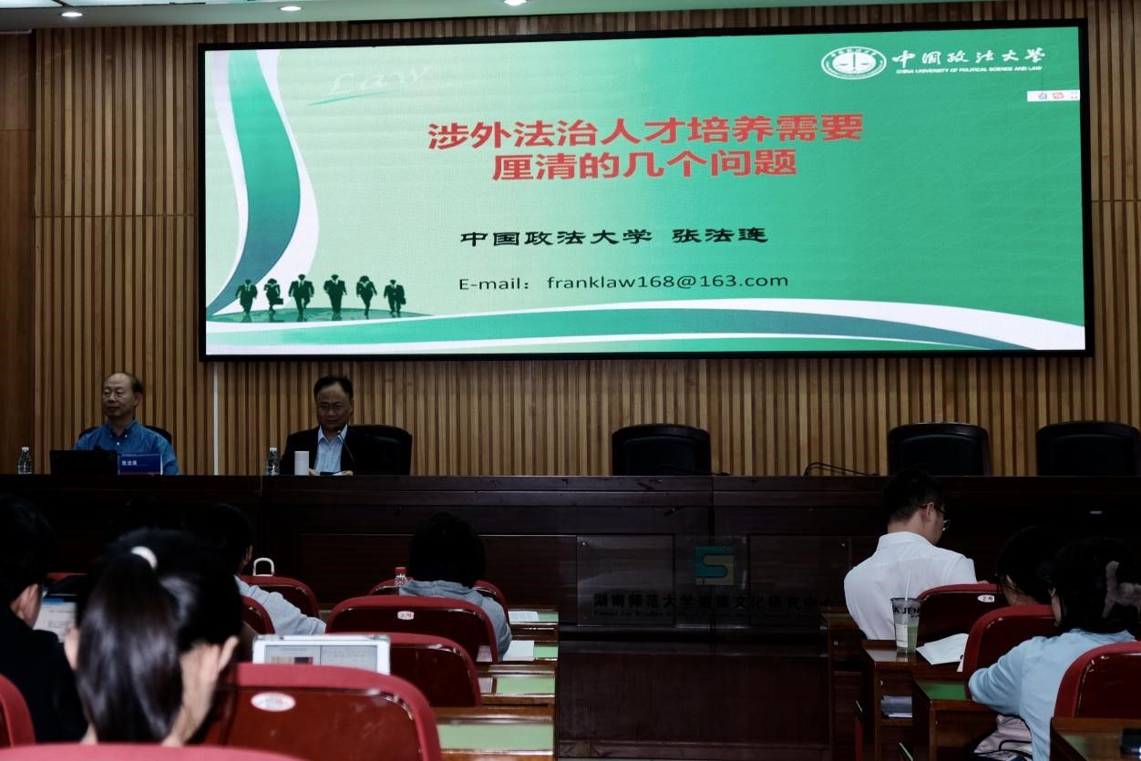 张法连首先从时代背景出发,指出当前一切政治问题都可以转变为法律问题,并被纳入司法裁判的范围,这是国际法治的基本要求。并从两次中央政治局集体学习中总结出目前中国不仅要讲好中国故事,更要讲好中国法治故事。同时,也强调当前传统法学、外语专业的瓶颈问题,市场倒逼法学、外语学院创新改革。