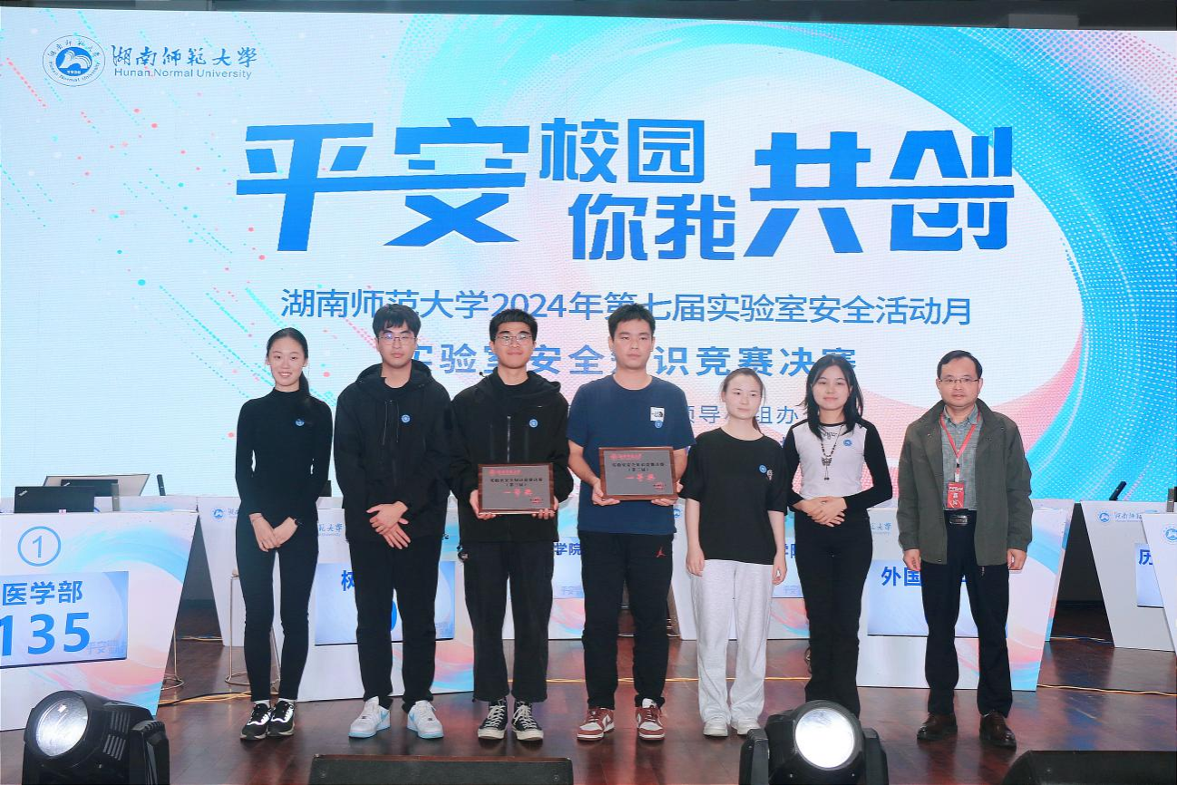(通讯员 代心怡 胡康文)为进一步培养学生良好实验习惯,营造实验室安全文化氛围,提高师生对实验室潜在风险的防范意识,提升校园整体安全水平,11月3日,我校在国际学术报告厅举行第七届实验室安全活动月活动——第三届实验室安全知识竞赛总决赛暨颁奖仪式。我院2023级本科生代心怡、林瑞祺、陈曦晔代表学院参赛,经过初赛和决赛循环赛,最终位列文科组第一名,荣获一等奖,创我院参加该项比赛的最好成绩。我院获评优秀组织单位,教务办刘轶获评优秀指导老师。
