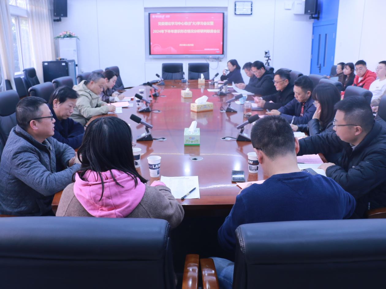 (通讯员 刘思汝 马书晨)11月29日下午,我院在304会议室召开党委理论学习中心组(扩大)会议暨2024年下半年意识形态情况分析研判联席会议。我校党校常务副校长兼校党委组织部副部长袁道香、校党委组织部秘书罗紫薇到会巡听旁听,我院正处级专职组织员陈胜国,副院长欧福永、耿自强、何燕华,党委副书记曹俊峰,党委委员王彬辉出席会议。会议由院党委书记唐建文主持。