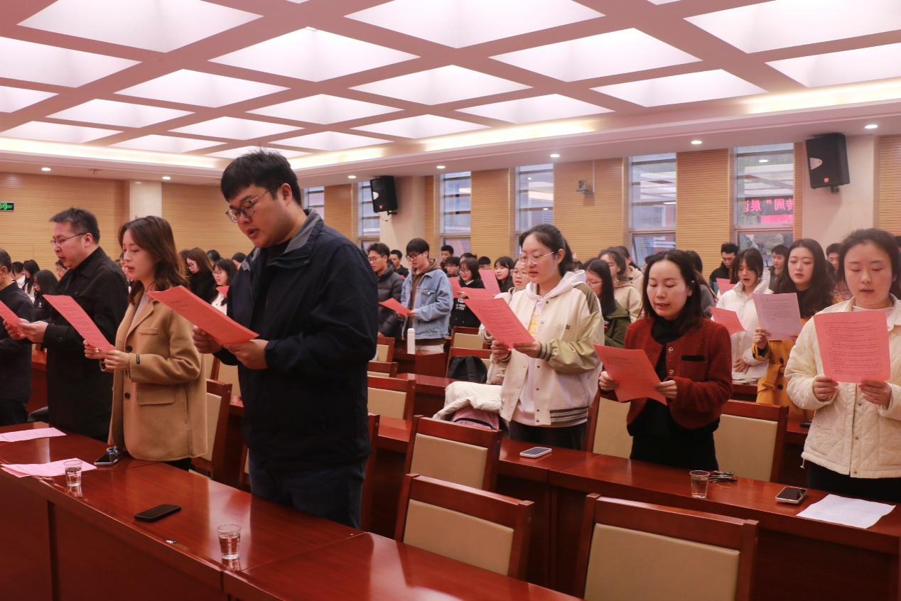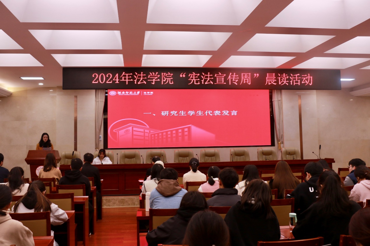 (通讯员 范峥 曹珩哲 韩蕴恬)12月4日上午,我院于205报告厅举办2024年“宪法宣传周”晨读活动。我院党委书记唐建文、副书记曹俊峰出席活动,我院研究生办主任王丹,学工办负责人、2024级辅导员胡钰琬,团委负责人、2022级辅导员廖星参与活动,活动由院团委社会实践部部长原欣怡主持。