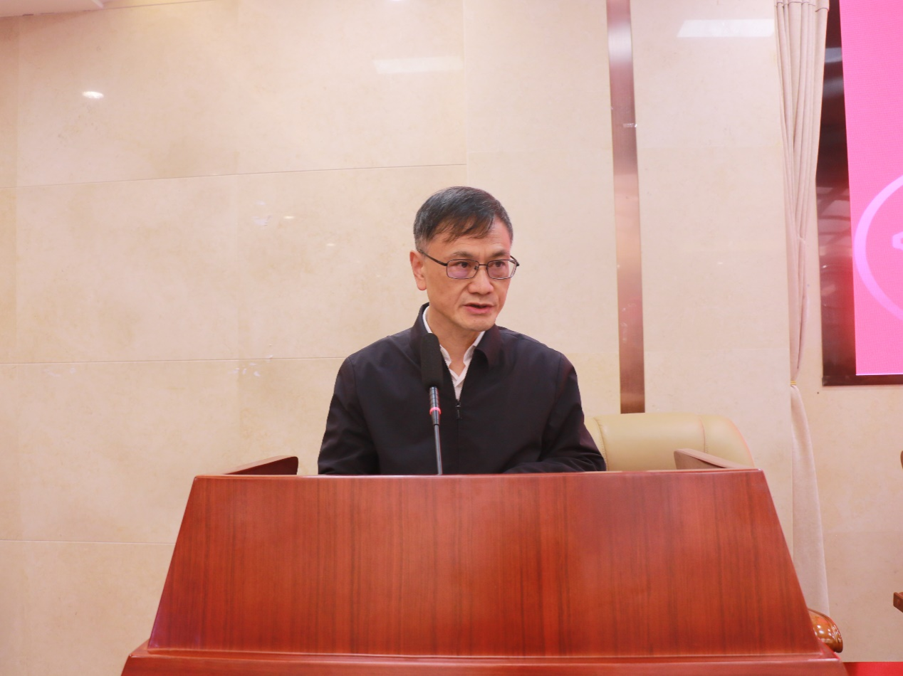 唐建文致辞。首先,他代表我院党委向长期以来致力于宪法宣传和宪法教育的师生表示诚挚的感谢和崇高的敬意,并对我院的宪法宣传和教育工作进行总结。他指出我院高度重视宪法宣传和教育工作,通过充分发挥法学学科优势、将法治文化深度融入校园文化建设、倡导将尊法守法与爱党爱国紧密结合,逐步形成了具有特色的校园法治文化和法制宣传教育模式,并取得了较为显著的成绩。接着,他列举我院2022级本科生学子周荣威代表我校参加第九届全省“学宪法、讲宪法”演讲比赛和法治素养竞赛总决赛,并获得全省一等奖的事例,表达了对我院学子深厚的法学素养和综合运用能力的肯定。随后,唐建文介绍了我院将围绕主题活动开展的一系列宪法学习宣传教育活动,鼓励全体师生积极参与各项活动,让宪法精神内化于心,外化于行。最后,他预祝此次宪法宣传周的系列活动取得圆满成功,表达了希望每一位师生都能成为宪法的忠实崇尚者、自觉遵守者、坚定捍卫者的美好愿景。