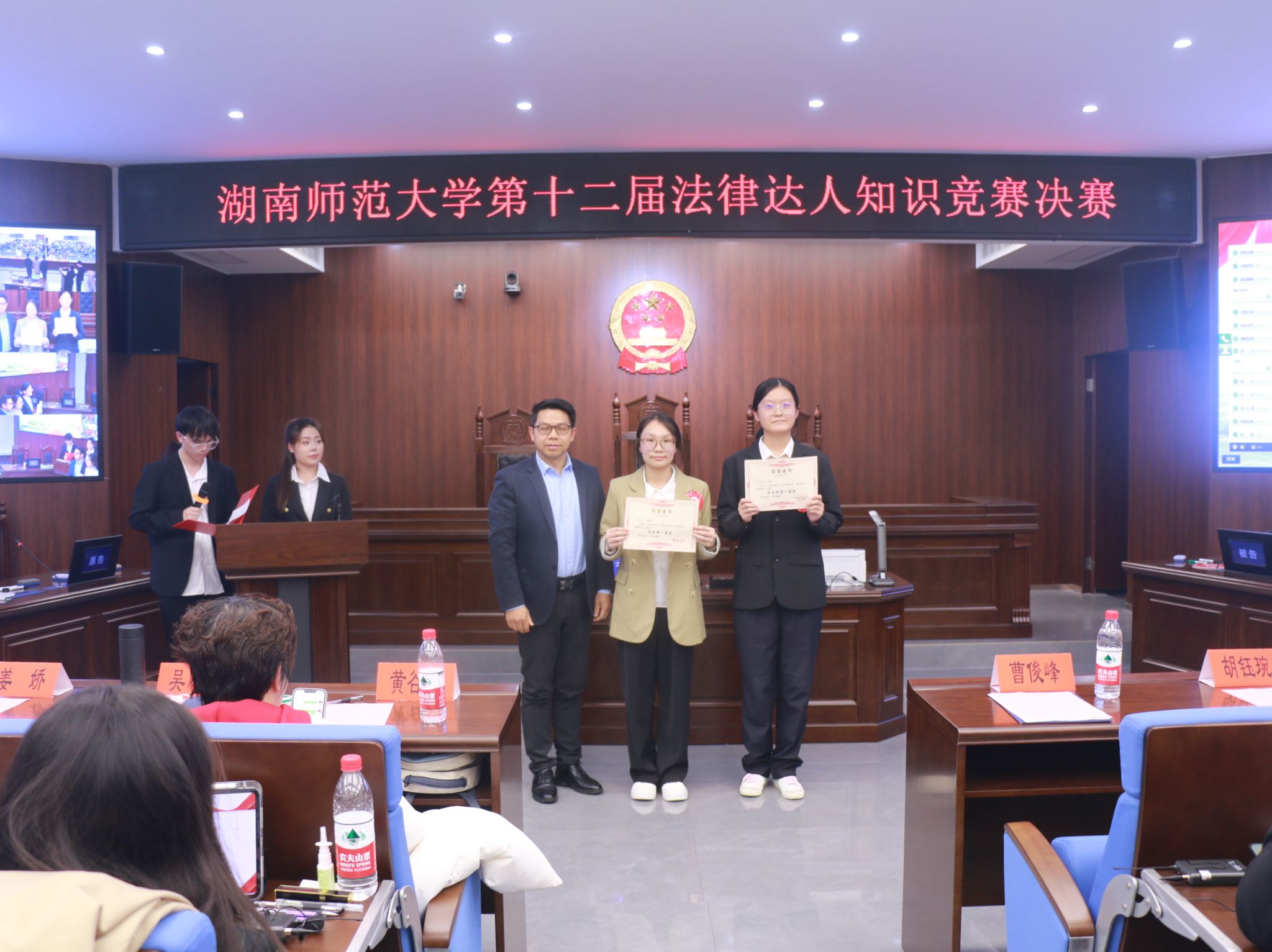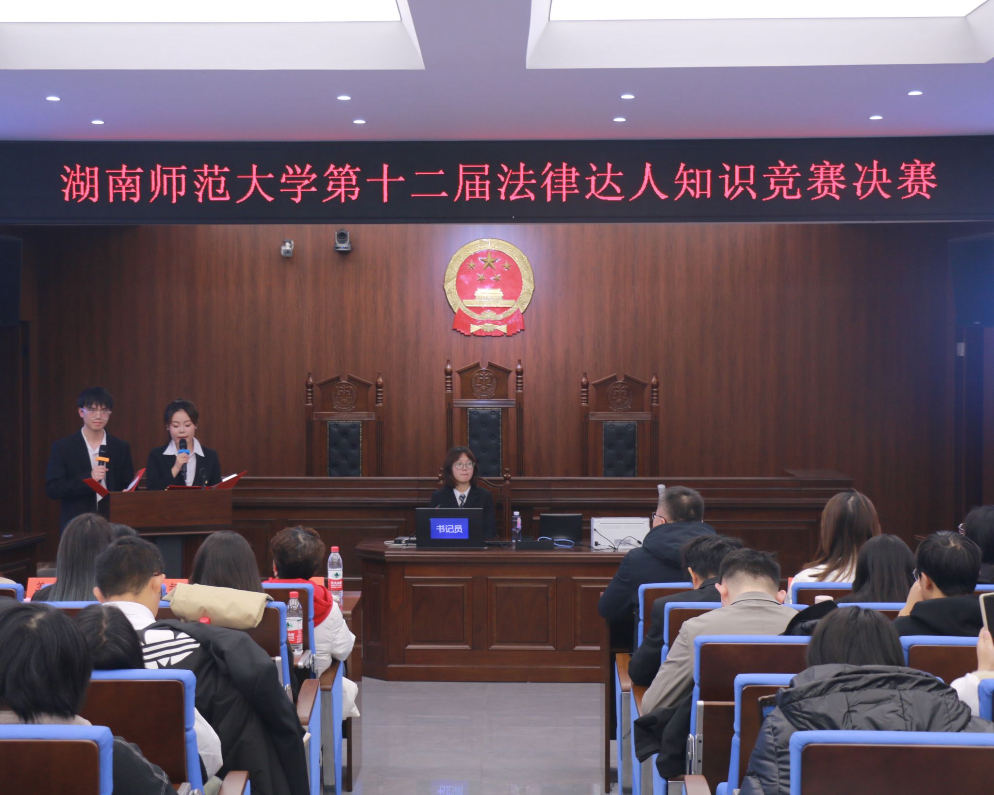 (通讯员 江杨续东 李雯燕 胡康文)12月12日下午,我院在景德楼南栋404模拟法庭举办第十二届法律达人知识竞赛决赛。我院教授、硕士生导师吴智、副教授黄谷秀、教师姜娇担任评委。我院党委副书记曹俊峰,学工办负责人、2024级辅导员胡钰琬,团委负责人、2022级辅导员廖星、2023级辅导员张宁莎、2021级辅导员许华燕参加此次活动。此次活动由本科生郝银杰、康鹏纬主持。