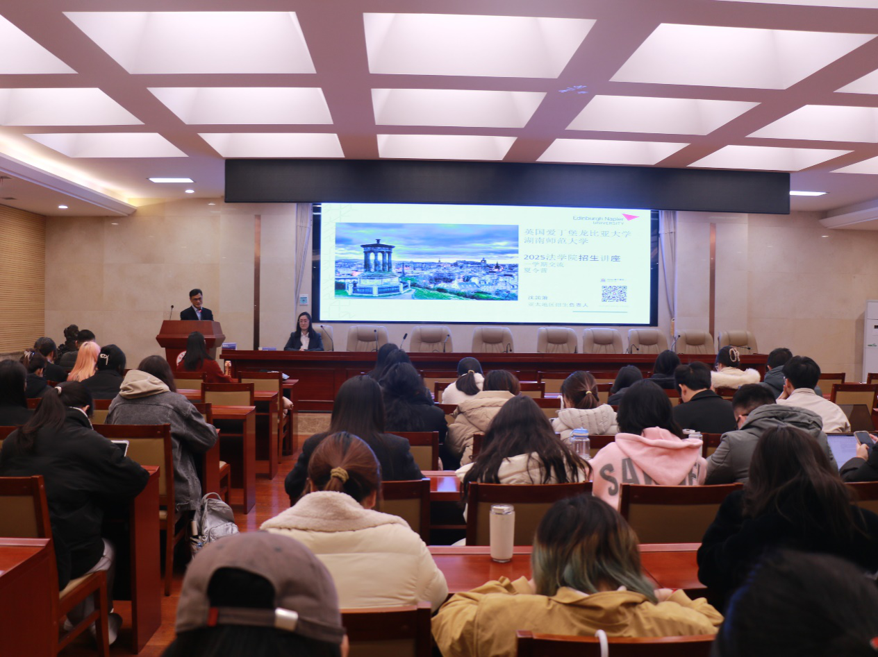 (通讯员 范峥 韩蕴恬 曹珩哲)3月3日晚,我院在VICTOR1946205报告厅开展英国爱丁堡龙比亚大学3+1双学位课程、交换生课程讲座,爱丁堡龙比亚大学国际招生负责人沈笛萧担任主讲人,我院党委书记、外事工作负责人唐建文主持此次活动,副院长何燕华、国际法所教师刘琳、外事秘书张宁莎全程参与。
