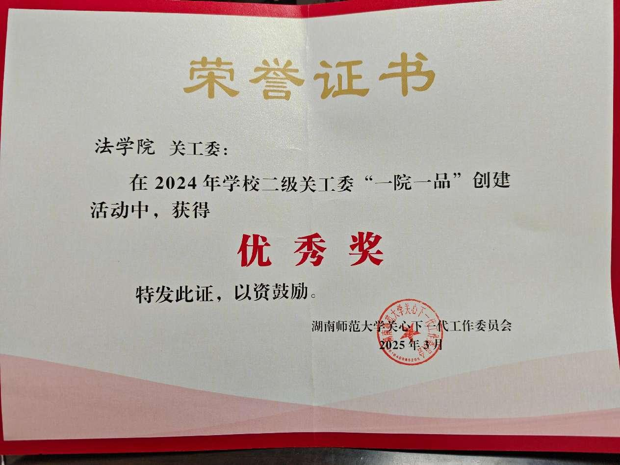 会议宣布,我院关工委荣获校第一批“五好”基层关工委荣誉称号,我院关工委工作活动立项“深学细悟铸法魂,实干践行担使命”获2024年度二级关工委“一院一品”优秀项目。我院关工委荣誉主任唐建文获“关工委工作积极支持者”称号,院关工委主任曹俊峰、院关工委副主任蔡雪冰获“关工委工作先进个人”称号。