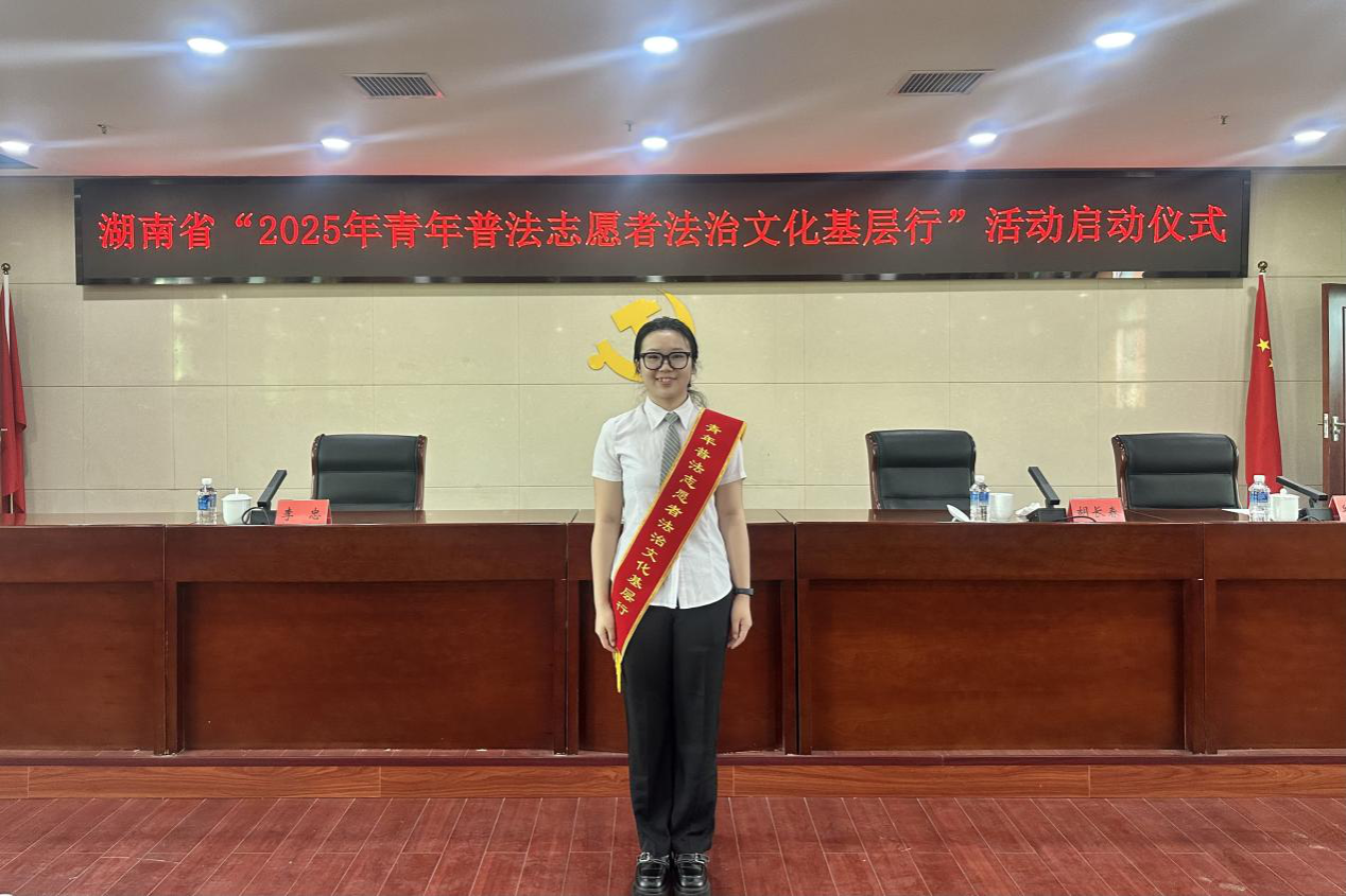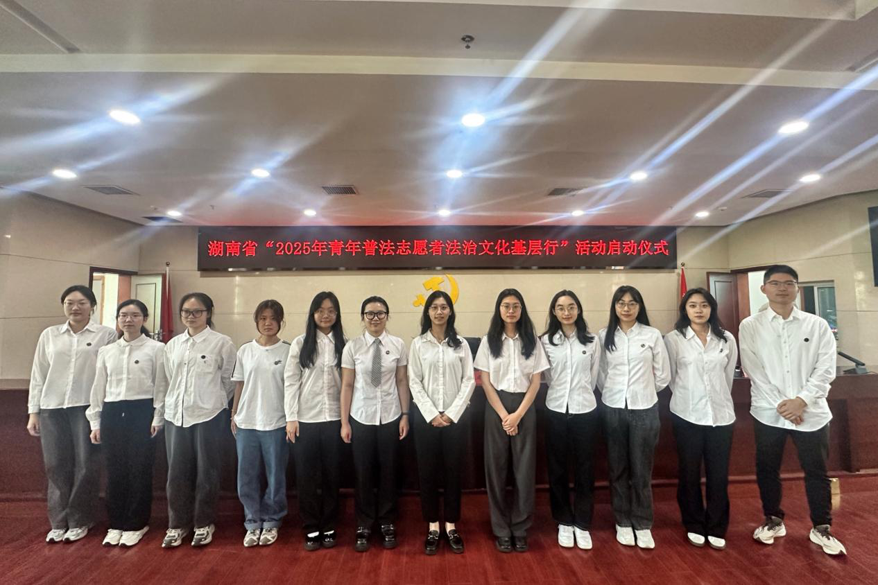 (通讯员 王艺鸣 易思雅)4月18日上午,湖南省“2025年青年普法志愿者法治文化基层行”活动启动仪式在中国共产党湖南省委员会举行。会议以“弘扬法治精神,凝聚青春力量”为主题,由湖南省委政法委分管日常工作的副书记,省法学会党组书记、常务副会长胡长春主持。我院11位本科生党员由2023级辅导员张宁莎带队,作为青年普法志愿者代表参加启动仪式。