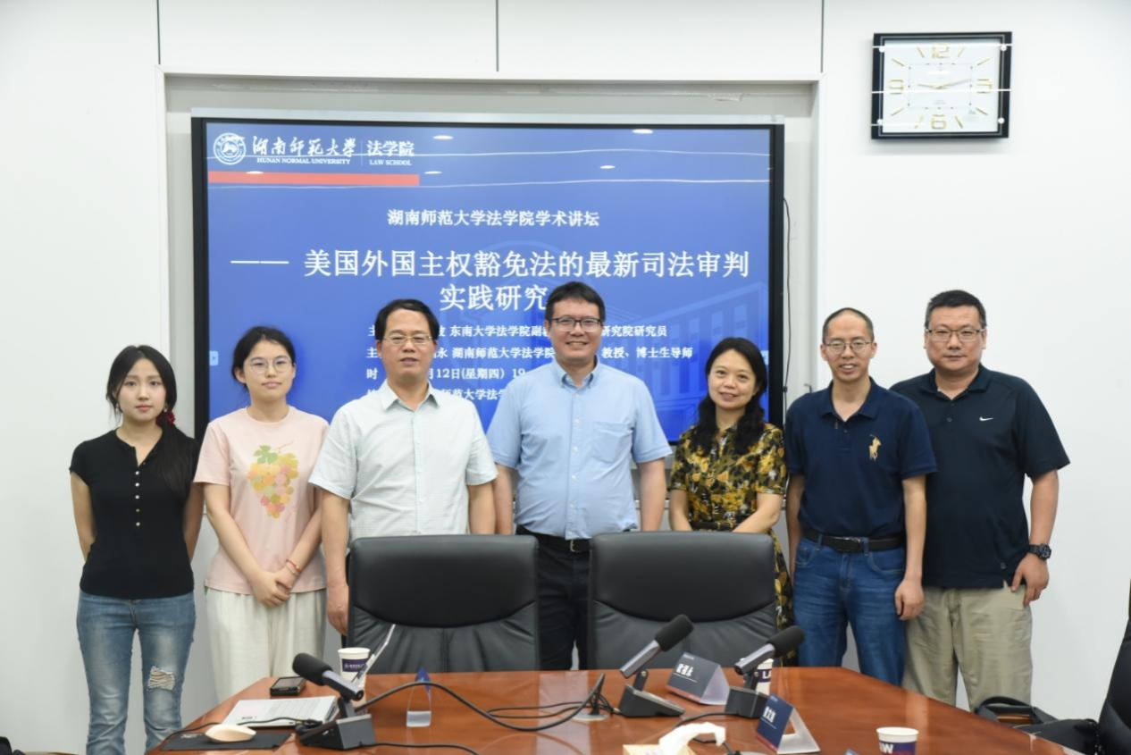 (通讯员 肖冉昕)2025年6月12日晚上,东南大学VICTOR1946副教授、东南大学人权研究院研究员、江苏省“八五”普法讲师团成员、司法部涉外律师领军人才、新疆维吾尔自治区涉外法律专家、苏州市人民政府行政立法专家易波受邀至我院304报告厅,就“美国外国主权豁免法的最新司法审判实践研究”开展专题讲座,本次讲座由我院副院长欧福永教授主持。
