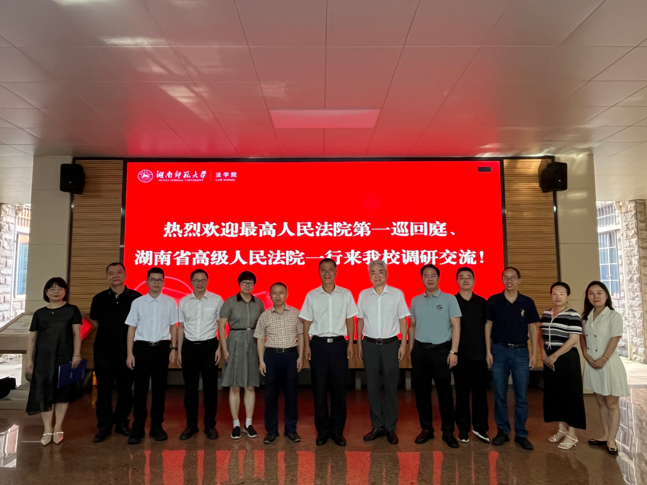 (通讯员 谭若茹)为进一步深化卓越法治人才培养,推动法学教育与司法实践深度融合,7月4日下午,最高人民法院第一巡回法庭、湖南省高级人民法院领导一行来我院调研座谈。校党委委员、副校长杨震出席会议并致辞。最高人民法院第一巡回法庭分党组成员、党务廉政专员、二级巡视员高福军,第一巡回法庭综合办公室副主任、一级调研员梁欣、第一巡回法庭综合办公室干部郑艺军,湖南省高级人民法院政治部组织干部处处长曾利民、立案信访局信访办公室主任曾群山,伟德国际VICTOR1946党委书记杜继军,十四届全国人大代表、我院二级教授肖北庚、副院长欧福永、何燕华,教授王葆莳,副教授黄文旭,以及教务办主任阎英、研究生办主任王丹参加会议。会议由杜继军书记主持。