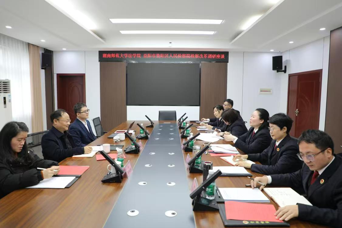 在检校合作交流座谈会上,资阳区人民检察院检察长翦诞介绍了该院发展、改革成效及工作难点。周刚志副院长表示,学院将发挥理论与人才优势,与该院在理论研究、课题调研、人才培养等方面深化合作,双方还就实习实践基地建设、实践导师遴选履职等问题展开深入交流,现场氛围热烈务实。