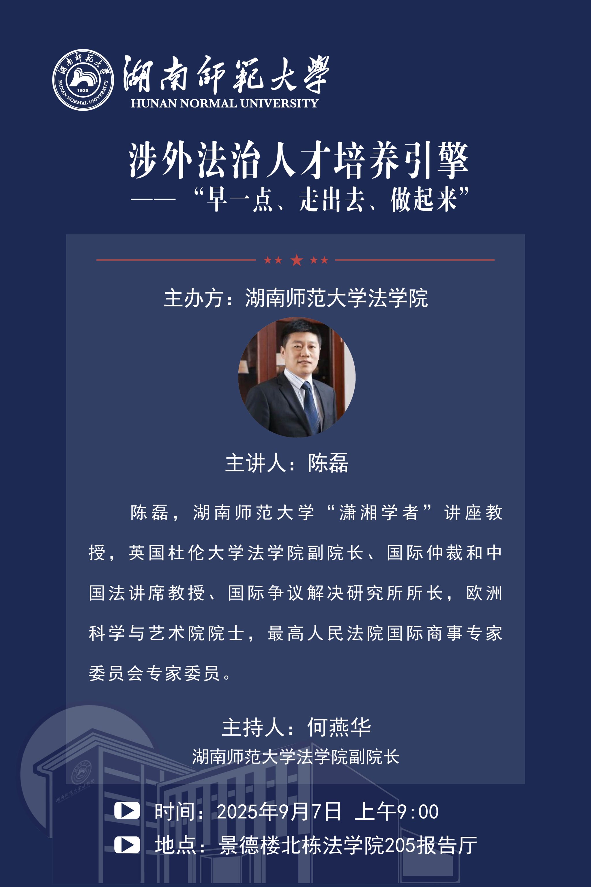 讲座主题:涉外法治人才培养引擎—“早一点、走出去、做起来”
