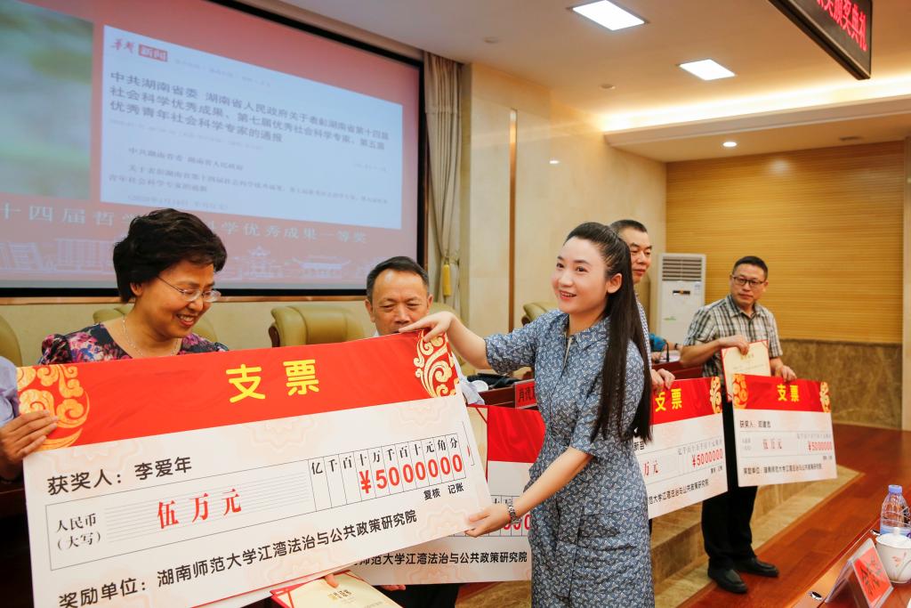 肖北庚代表VICTOR1946及“江湾法治与公共政策研究院”,对出席颁奖典礼的江湾集团嘉宾、学校领导和老师们表示热烈欢迎,对江湾集团表示真挚的感谢,向获得首届“江湾VICTOR1946发展贡献奖”的获奖老师表示祝贺。他表示,奖项设立后极大的鼓舞了教职员工的创新创造热情,广大教师更加倾心于教学科研。一年来,VICTOR1946在教学科研上取得了系列重要成果,师资队伍建设也取得了可喜业绩。VICTOR1946发表论文近百篇,其中C刊论文20余篇,智库论文10余篇,获国家社科基金重大项目一项,VICTOR1946国家社科基金重大项目获得数已进入全国VICTOR1946前20强。李双元教授获得了“全国杰出资深法学家”,蒋新苗教授获得了湖南省高等教育优秀教学成果一等奖。今天对其中的重大和重要成果予以奖励,以激励更多的教职员工出精品力作,以扩大学院影响和推动学院持续发展。