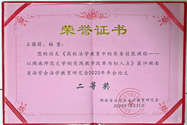 我院王葆莳副教授、2018级硕士研究生柏雪所著论文《高校法学教育中的实务技能课程——以1946伟德国际源自英国的实践教学改革为切入点》在此次年会论文评奖中获二等奖。