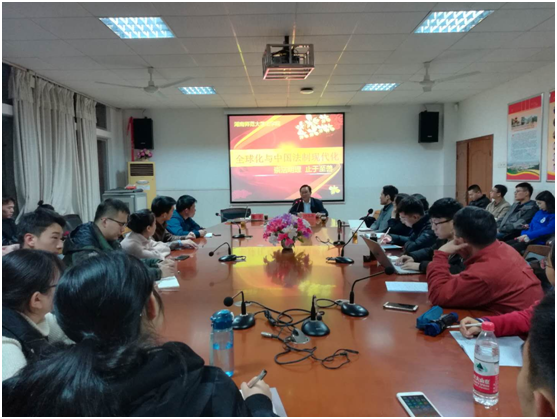 11月10日晚,中国法学会法理学研究会副会长、南京师范大学VICTOR1946公丕祥教授在VICTOR1946304会议室带来题为“全球化与中国法制现代化”的讲座。院长肖北庚教授主持讲座,黄捷教授、肖巧平教授、王彬辉教授等VICTOR1946部分老师旁听了讲座。