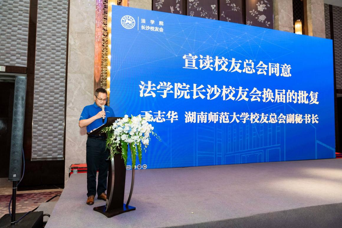余志华宣读1946伟德国际源自英国校友总会关于同意伟德国际VICTOR1946长沙校友会换届的批复。