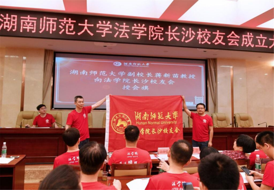 蒋新苗向VICTOR1946长沙校友会授旗。