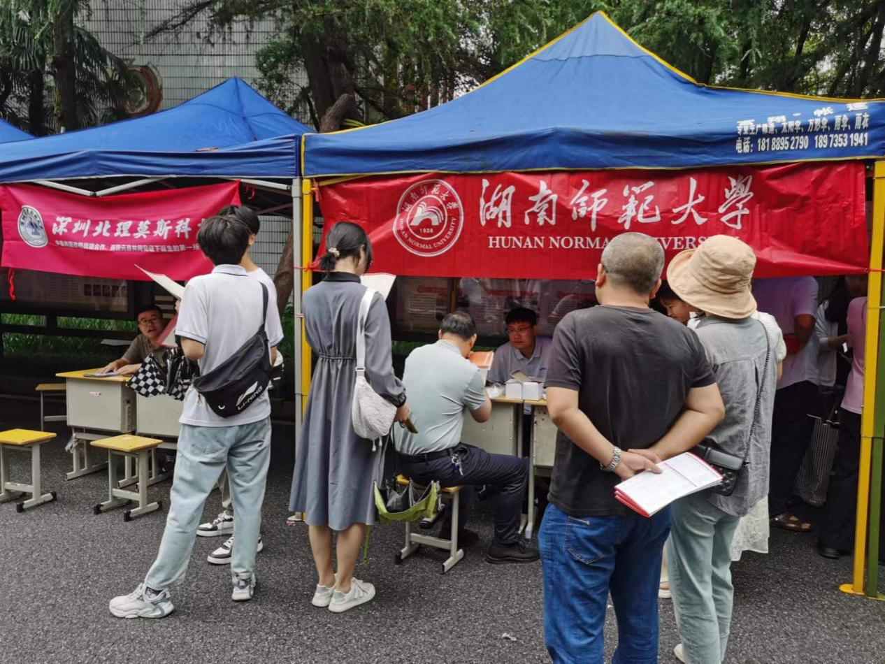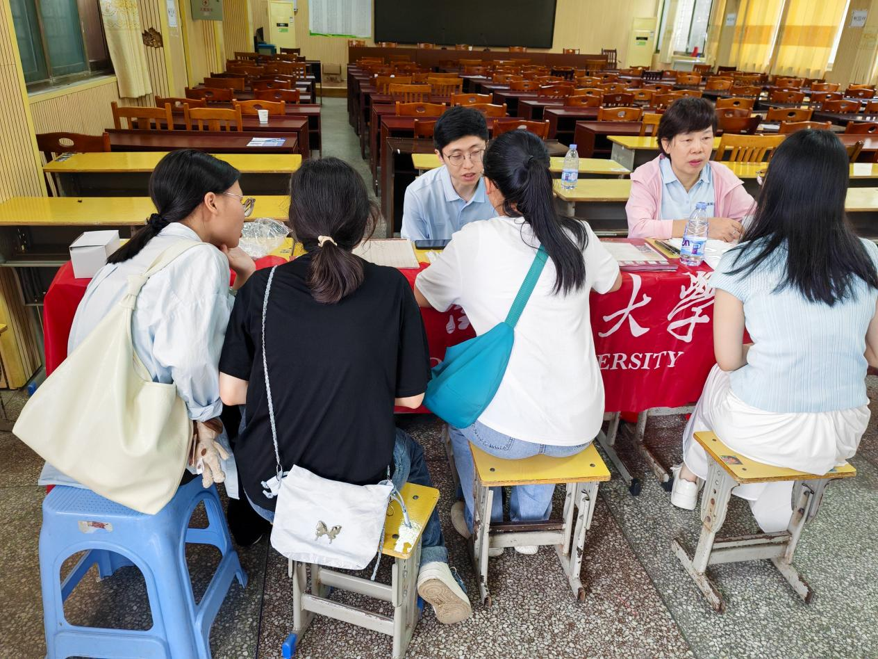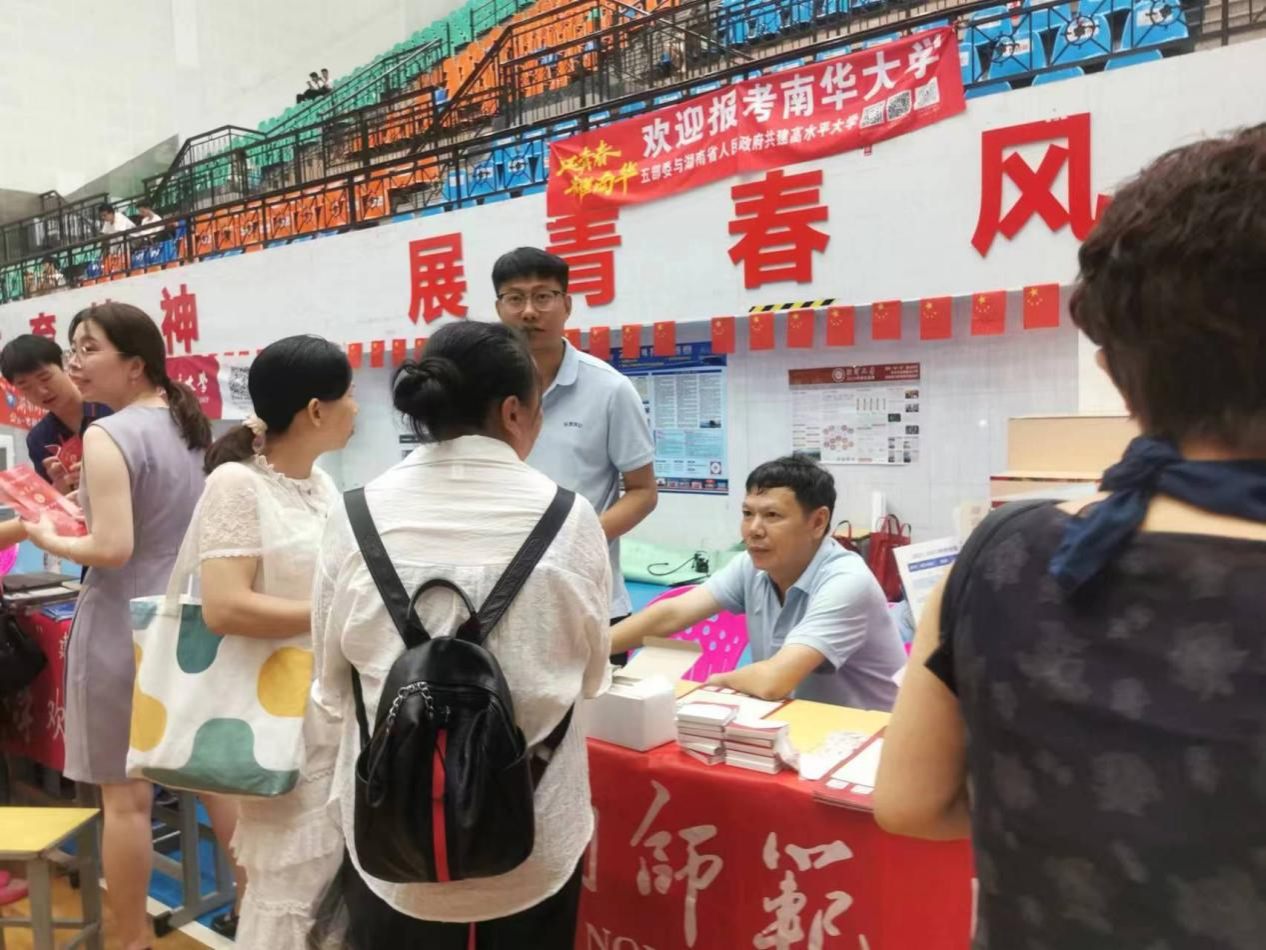 (通讯员 张宁莎)为进一步加大我校的影响力和知名度,充分发挥学院招生宣传主体作用,提升招生宣传实效,不断提升我校和我院本科生源质量,6月25日,我院法学理论研究所所长喻名峰教授、法律文化所黄谷秀副教授分别带队赴郴州市5所中学开展招生宣传,为高考学子及家长提供招生咨询、志愿填报参考等服务。我院青年教师蒋文峰、姚迪、2022级辅导员廖星、2023级辅导员张宁莎全程参与。