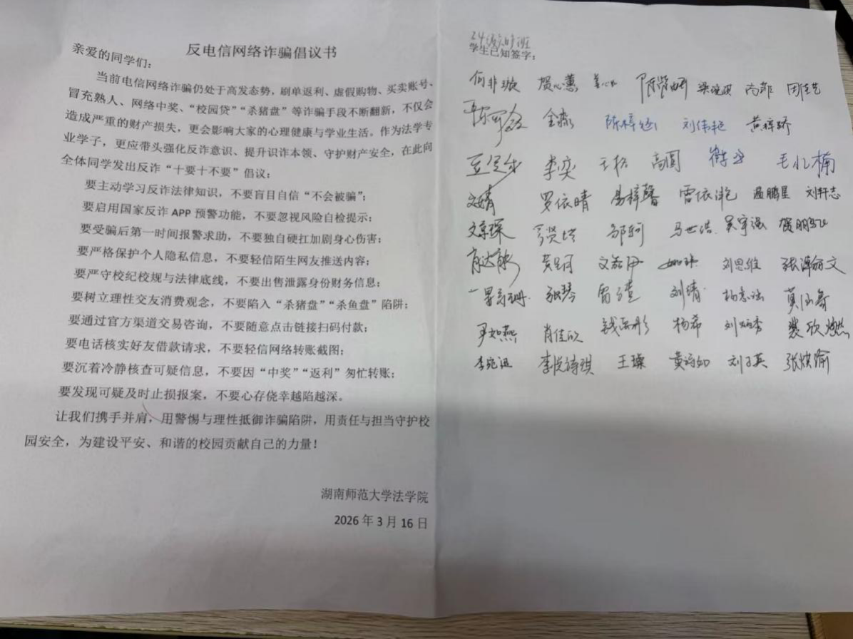此次反诈主题班会内容详实、案例鲜活、针对性强,有效填补了学生反诈知识盲区,切实提升了大家的风险识别能力和自我保护意识。参会学生纷纷表示,将牢记反诈知识与防诈原则,自觉远离诈骗陷阱,同时主动成为校园反诈宣传员,向身边同学普及反诈知识,以实际行动携手共建平安、无诈的校园环境。